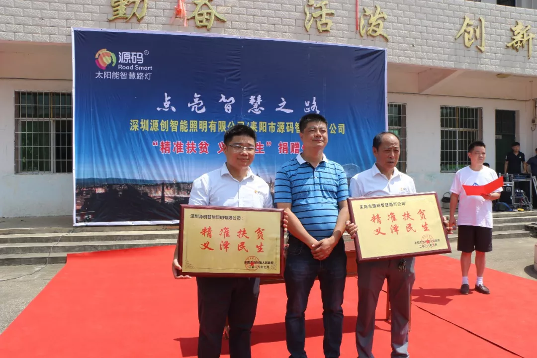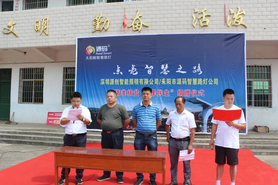 儀式現場,源碼王總和耒陽源碼周總向哲橋鎮紅星村與黎明村無償捐贈一批源碼太陽能智慧路燈,王總表示“源碼將始終肩負責任,在提供好產品的同時,懷著感恩的心,繼續用我們最大的努力為精準扶貧貢獻力量。”