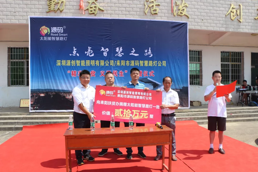 7月28日上午,在耒陽市哲橋鎮領導的主持下,深圳市源創智能照明有限公司和耒陽市源碼智慧路燈公司在哲橋鎮舉行“精準扶貧·義澤民生”太陽能智慧路燈捐贈儀式,儀式匯聚了耒陽市政府相關領導以及耒陽市電視臺新聞記者。